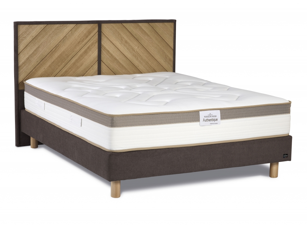 Âme 100% NATSOFT® 50kg/m3enrichi d'huile végétale Couchage Mémoire de forme 4 cm+ BLUE SOFT® 40kg/m3 4 cm en accueil Face de couchage : garnissage Lin, Coton & Ouate blanche Face de couchage : garnissage Ouate & Windmax® Poignées horizontales, Finition Euro topper déco